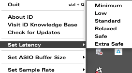 The latency settings are also customisable in an interesting way. Using the “iD” program in the bottom right hand corner (Windows), you can bring up the menu to set the sample rate, buffer size and latency. This is quite a great way to be honest, as you no longer have to modify these settings per DAW, allowing you to just set them and then away you go!