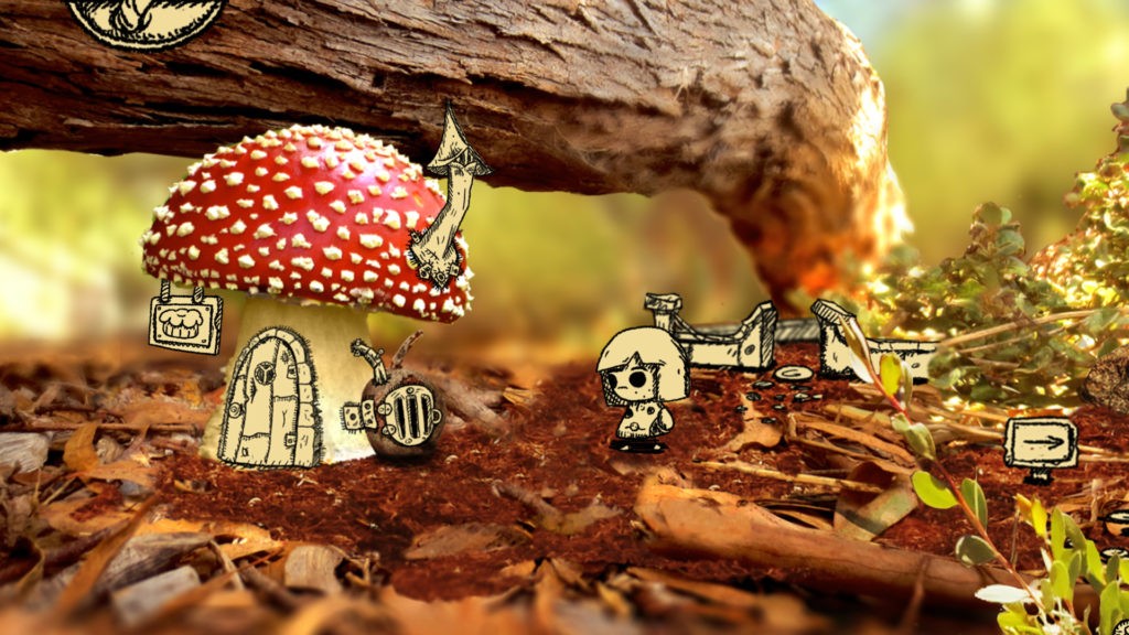 Tala and the Flower Seed is another lovely sounding game, with music from Cody Rueger. Although the soundtrack is on a loop, it’s a very pretty and aesthetically pleasing plucked acoustic guitar, with palm muted notes and harmonics set against the gentle strumming and ringing out of notes. The game is a mixed media kind of visual with hand drawn, scribbled characters exploring a background of real photographs such as grassy area with mushrooms and haystacks. The music slots into the overall experience well, and helps us to connect to the organic nature of the imagery.
